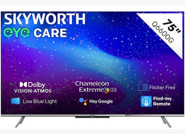 The Skyworth 75-inch QLED Google TV (75Q7700G) is a high-performance smart TV designed to deliver premium picture quality and immersive sound. A fantastic choice for those seeking a high-end 4K TV with cutting-edge features like QLED display technology, Dolby Vision, Dolby Atmos, and smart Google TV functionality.