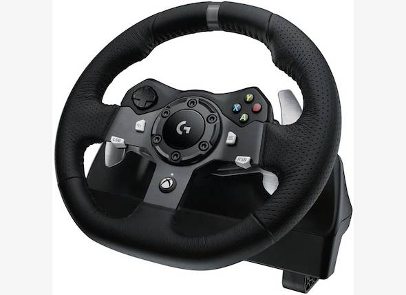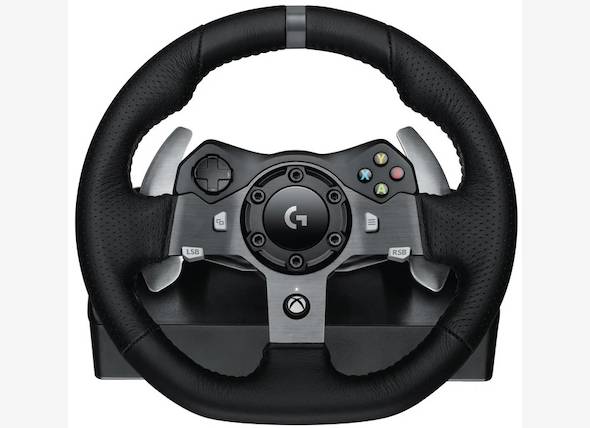 Logitech G920 Driving Force Racing Steering Wheel for Xbox One and PC - Engineered for the perfect driving experience with dual-motor force feedback, stainless steel paddle shifters and hand stitched leather wheel. Adjustable floor pedals let you accelerate, brake and change gears with the feel of an actual car.